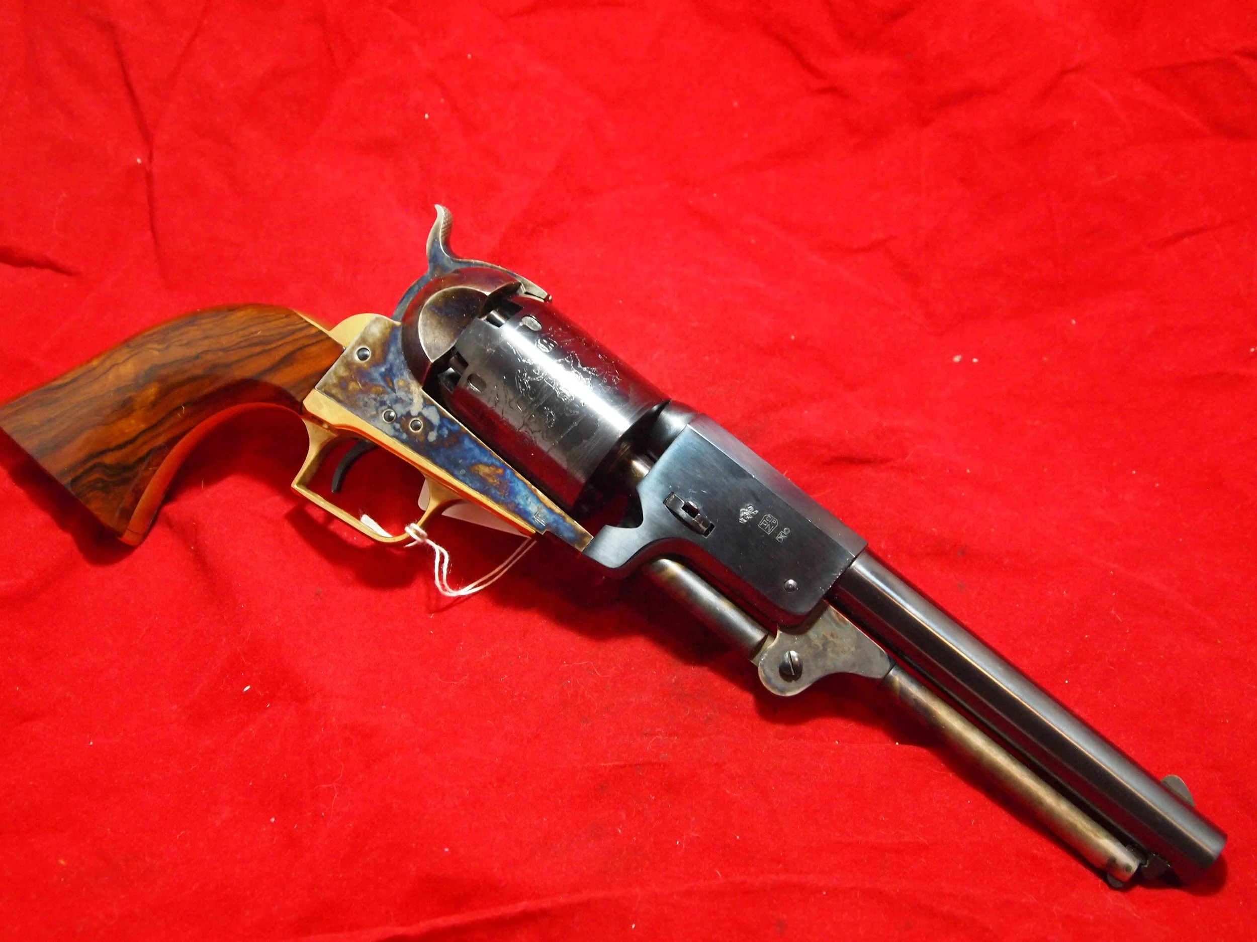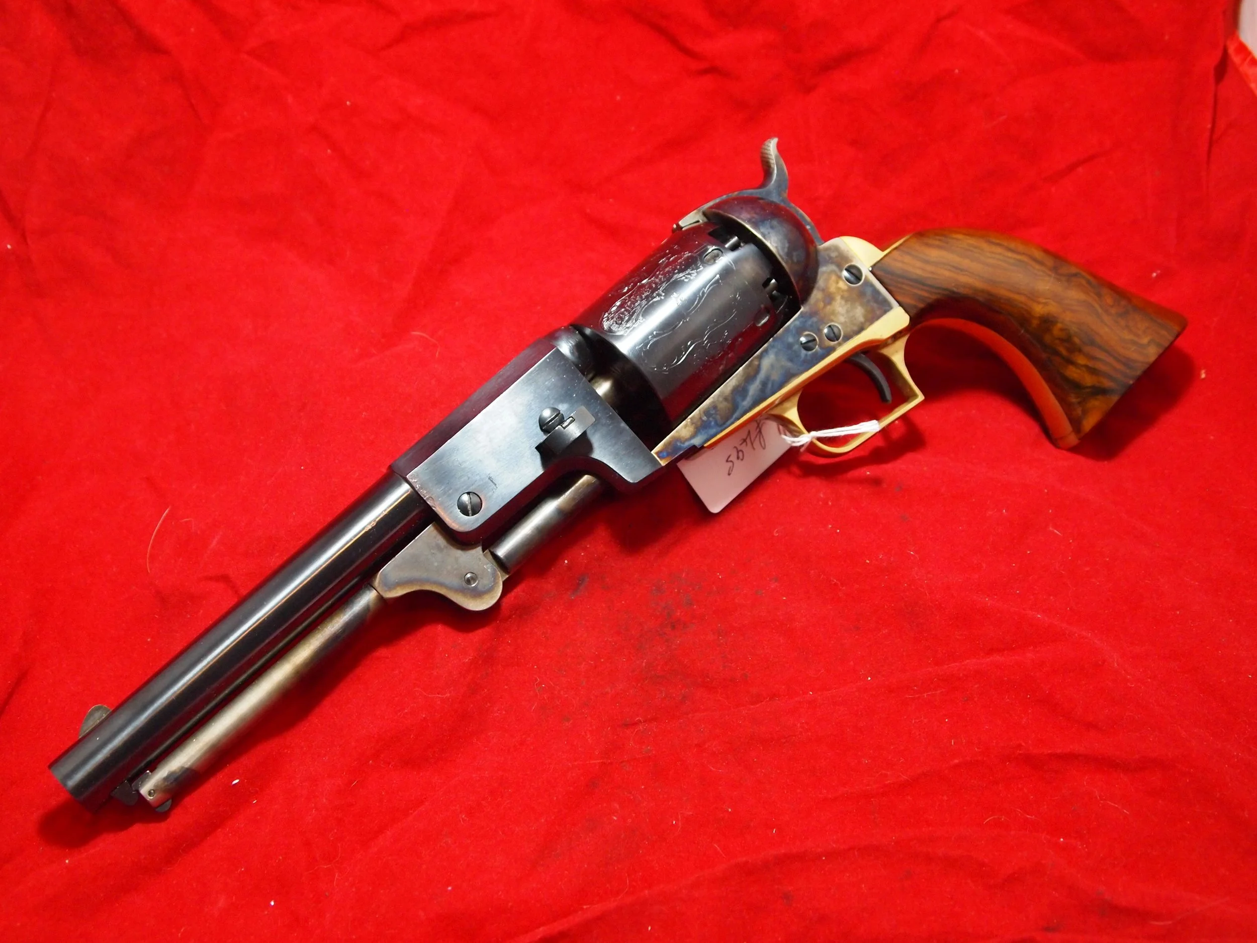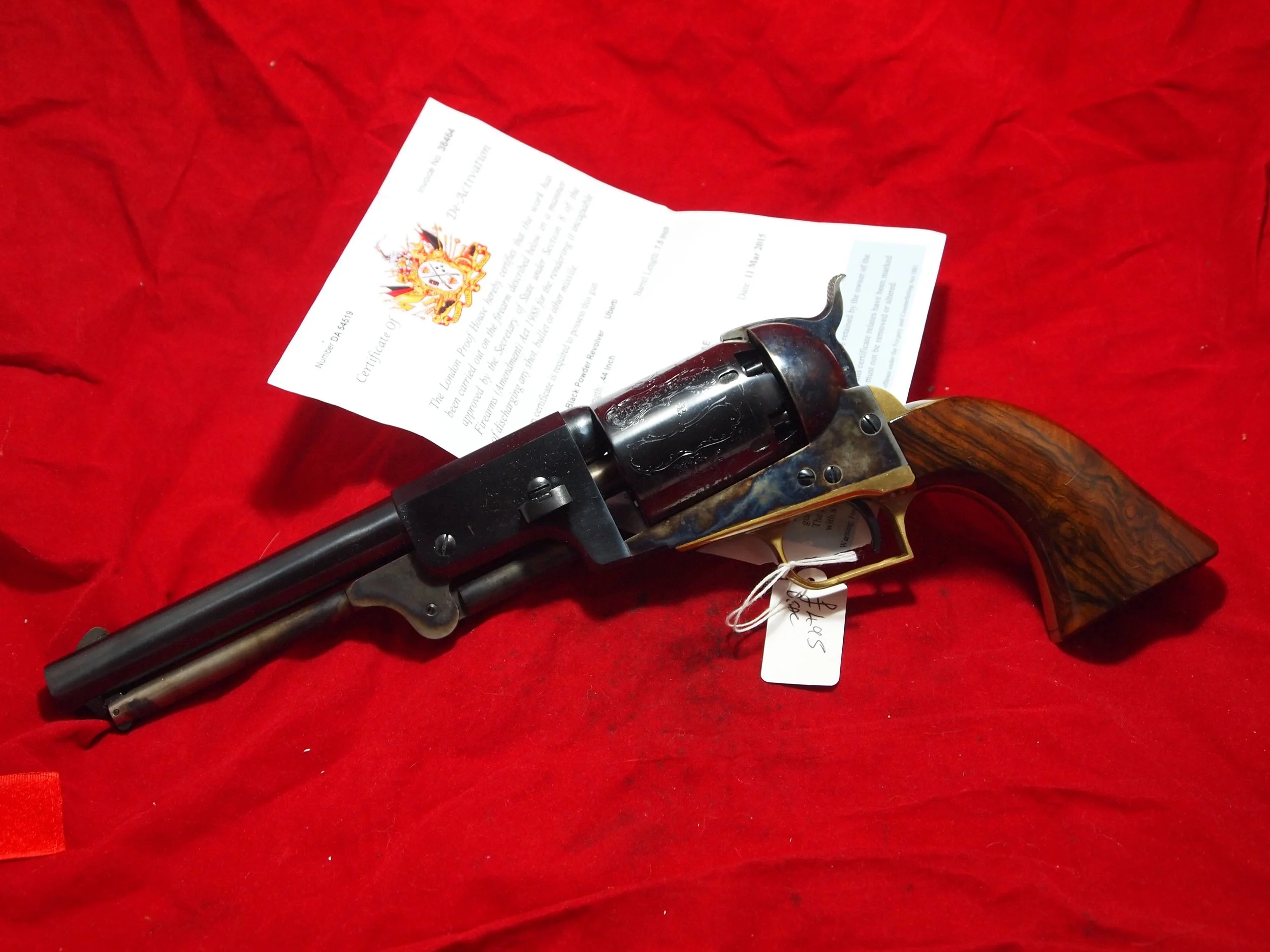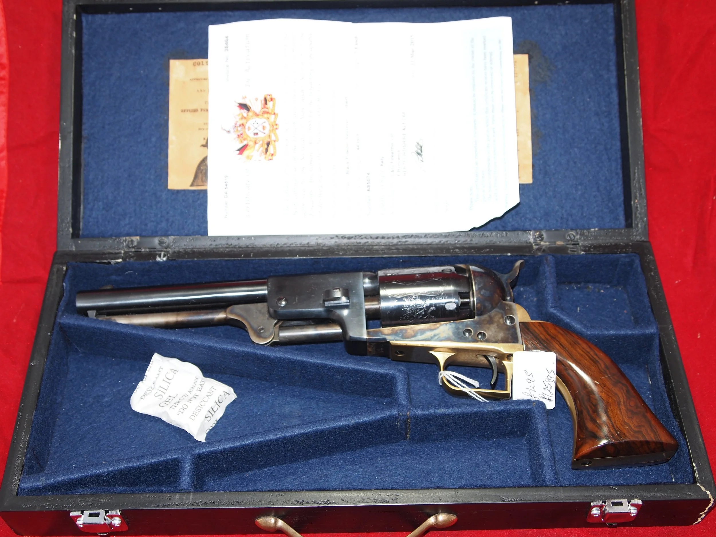 A beautiful steel framed deactivated replica of a Colt Dragoon. It is an older the action cocks and dry fires. It has clear nipples to fire percussion caps and comes in a presentation box. This Uberti made replica is in as new condition and I would think it was deactivated without firing a shot! A massive pistol, that would be a great centre piece for your collection. Enjoy the photos!