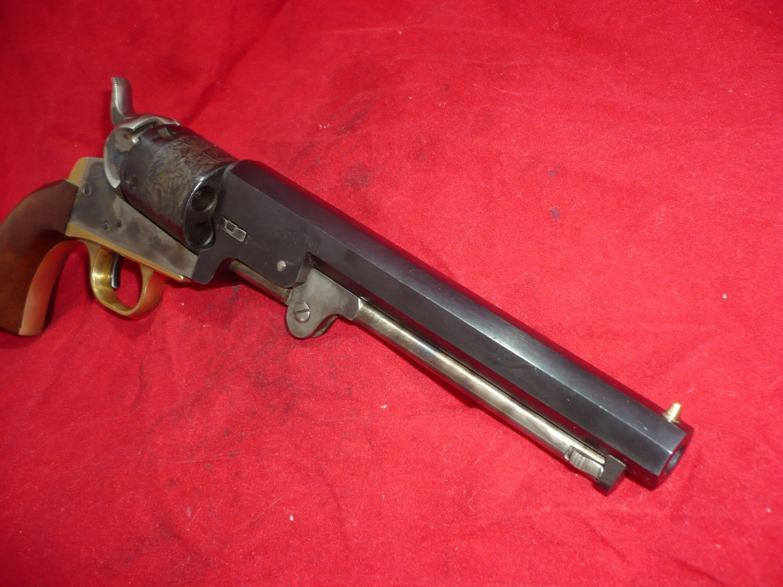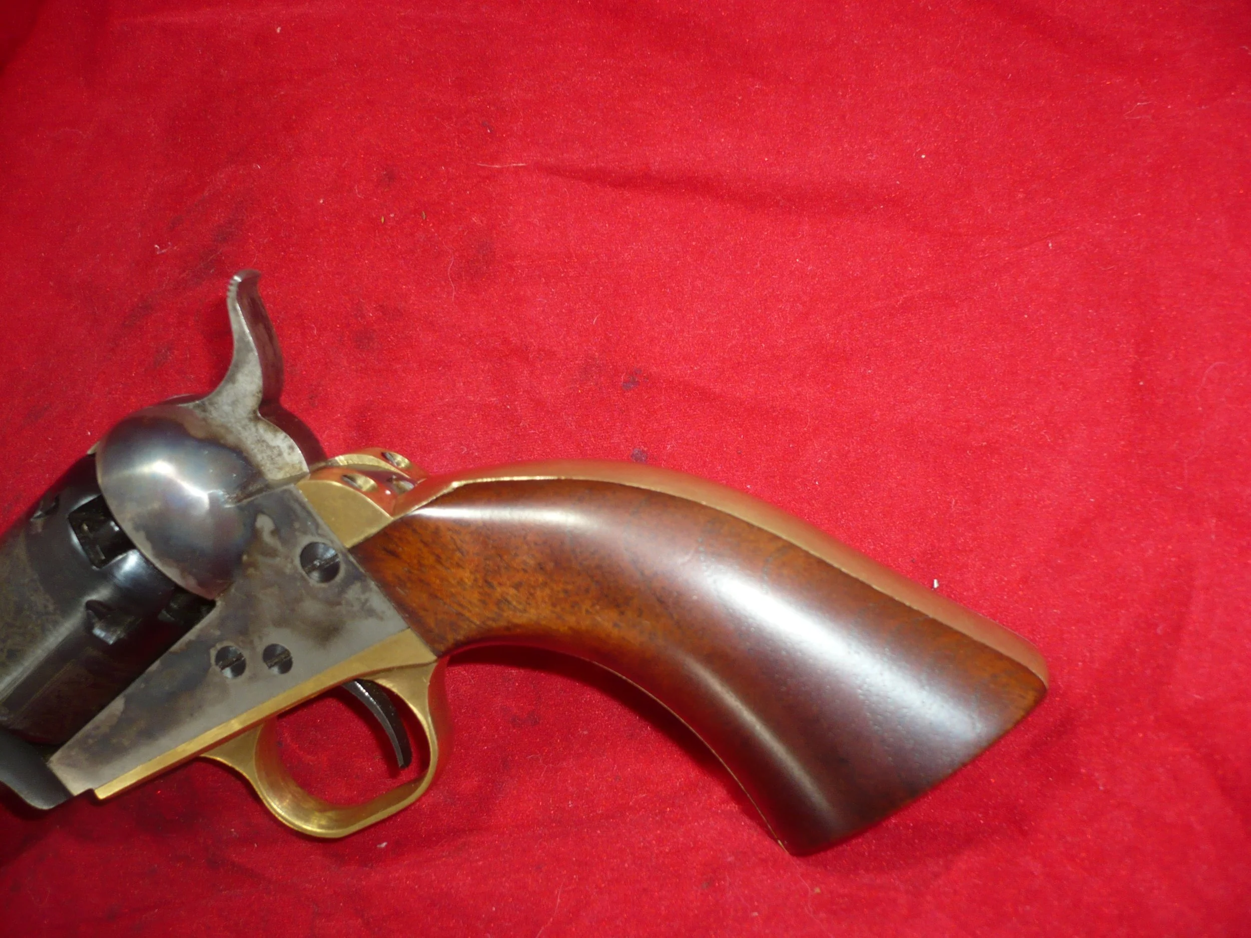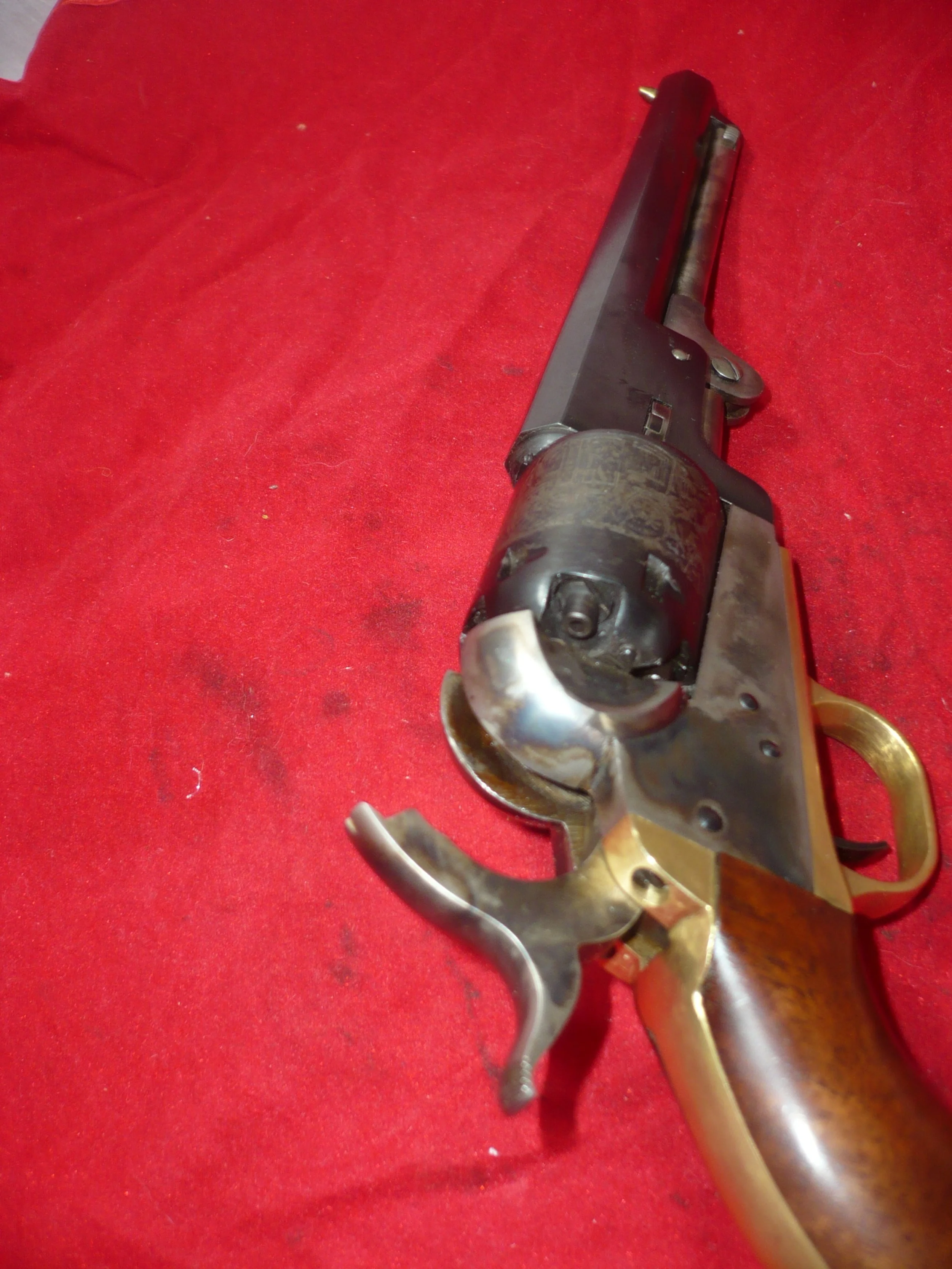 This is a very nice quality inert replica, (maybe by Pietta) it is in very good condition and cocks and dry fires. (It has clear nipples so you could fire percussion caps.)