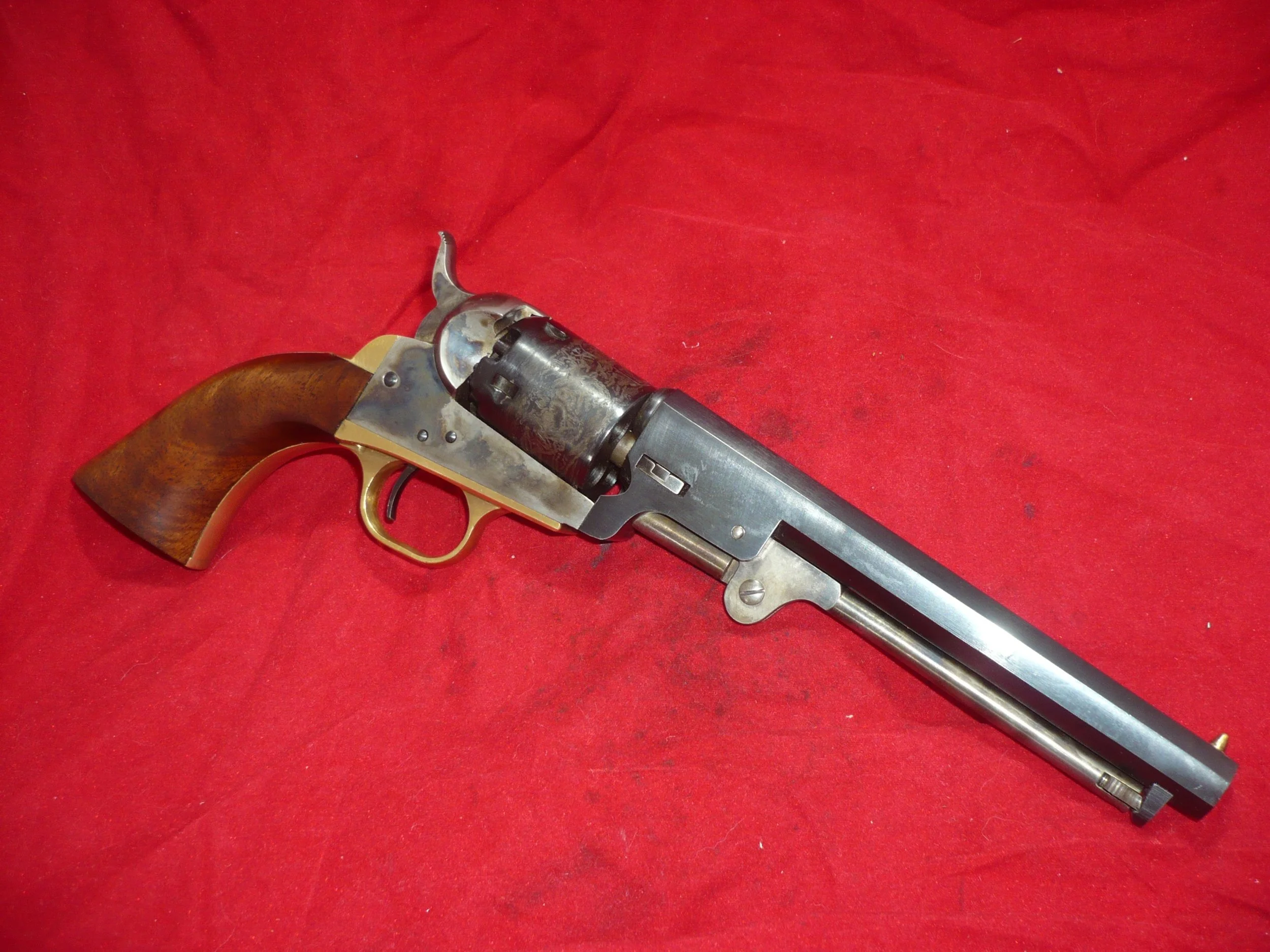 A steel framed inert replica of a 1849 Colt Pocket Pistol. Colts first successful and most numerous pistols were the 1848 and 1849 percussion pocket revolvers. They set the pattern for the Navy, Army and all the open frame pistols, but one we rarely see replicated, which is a shame.
