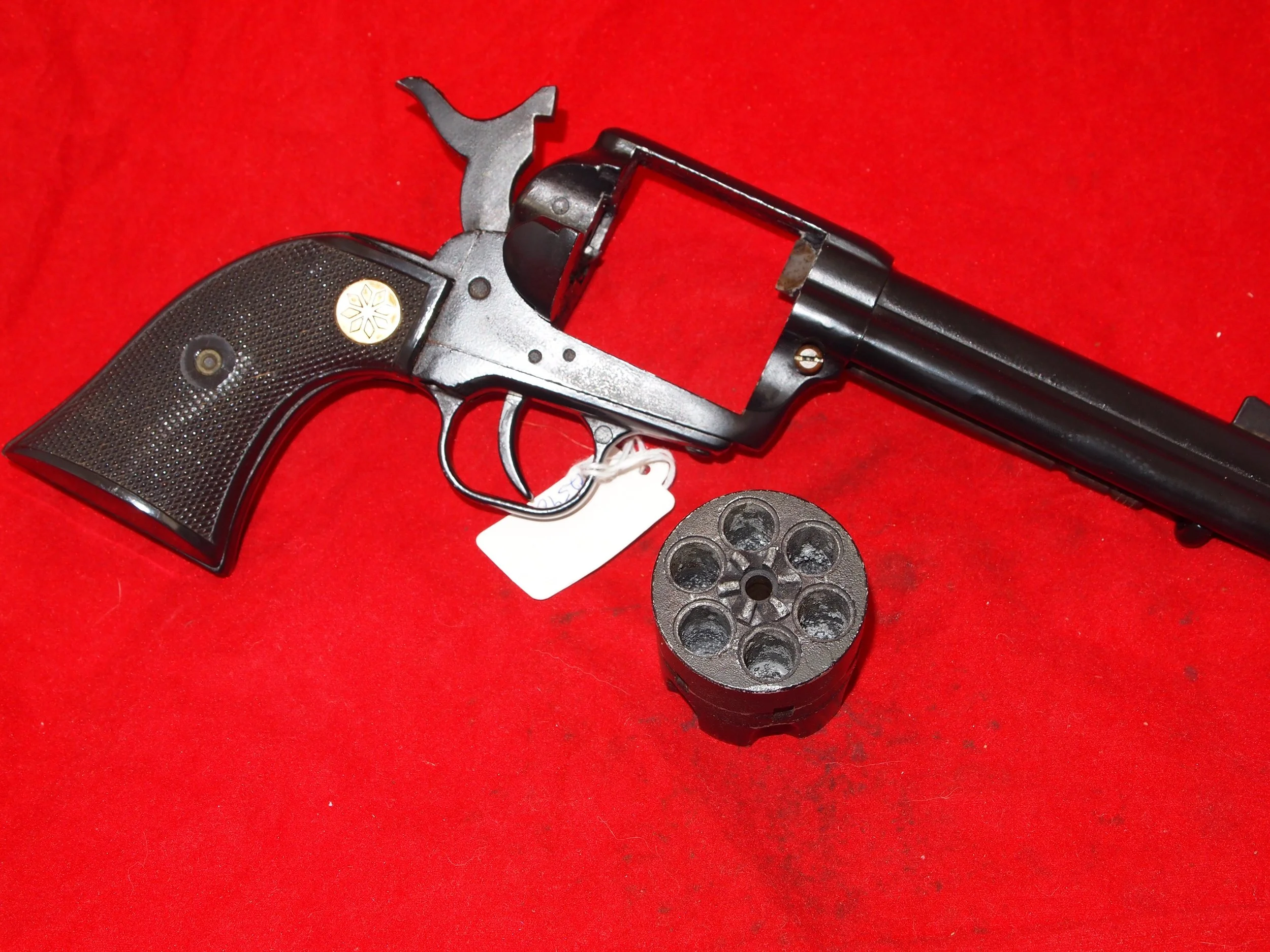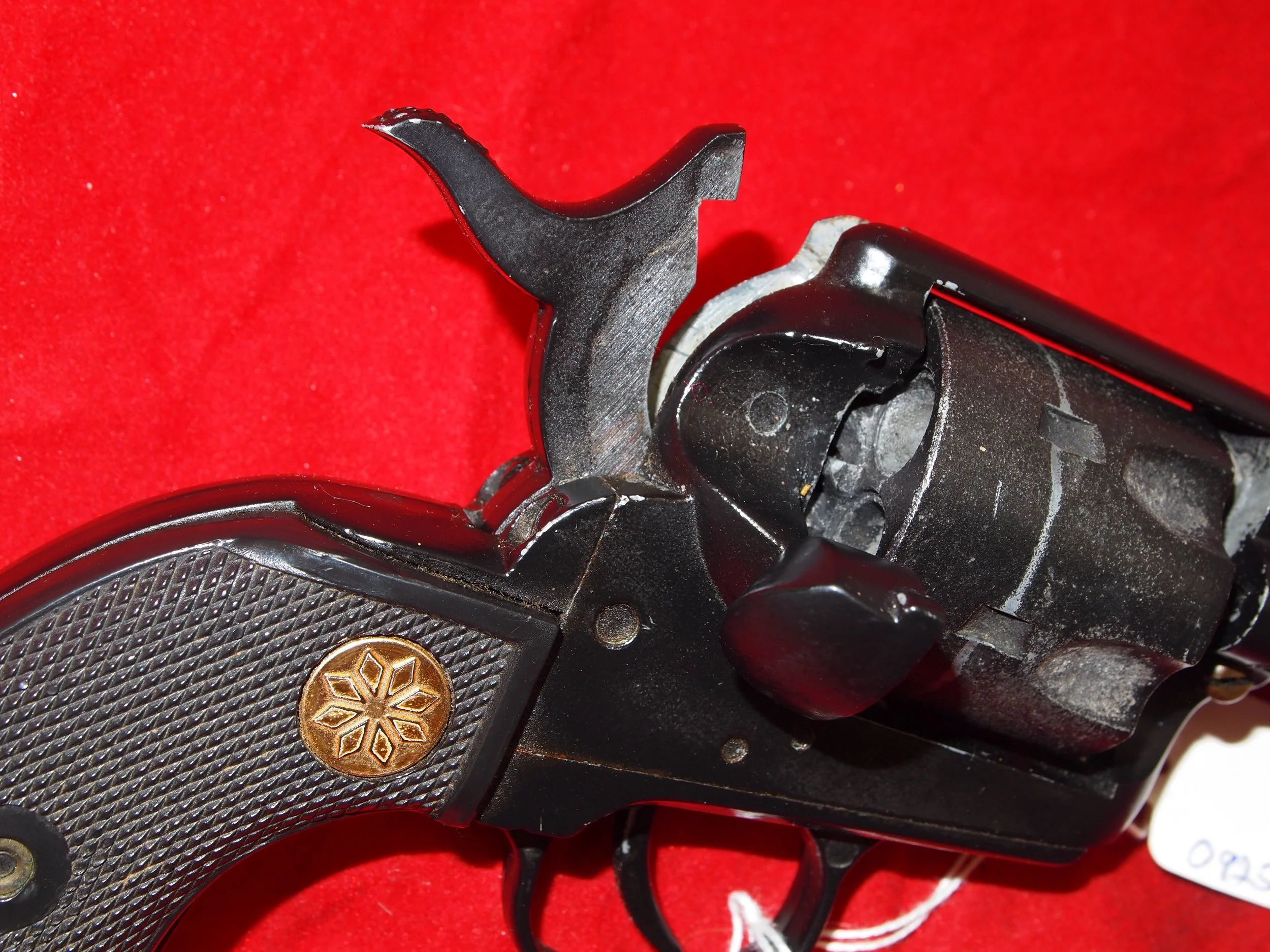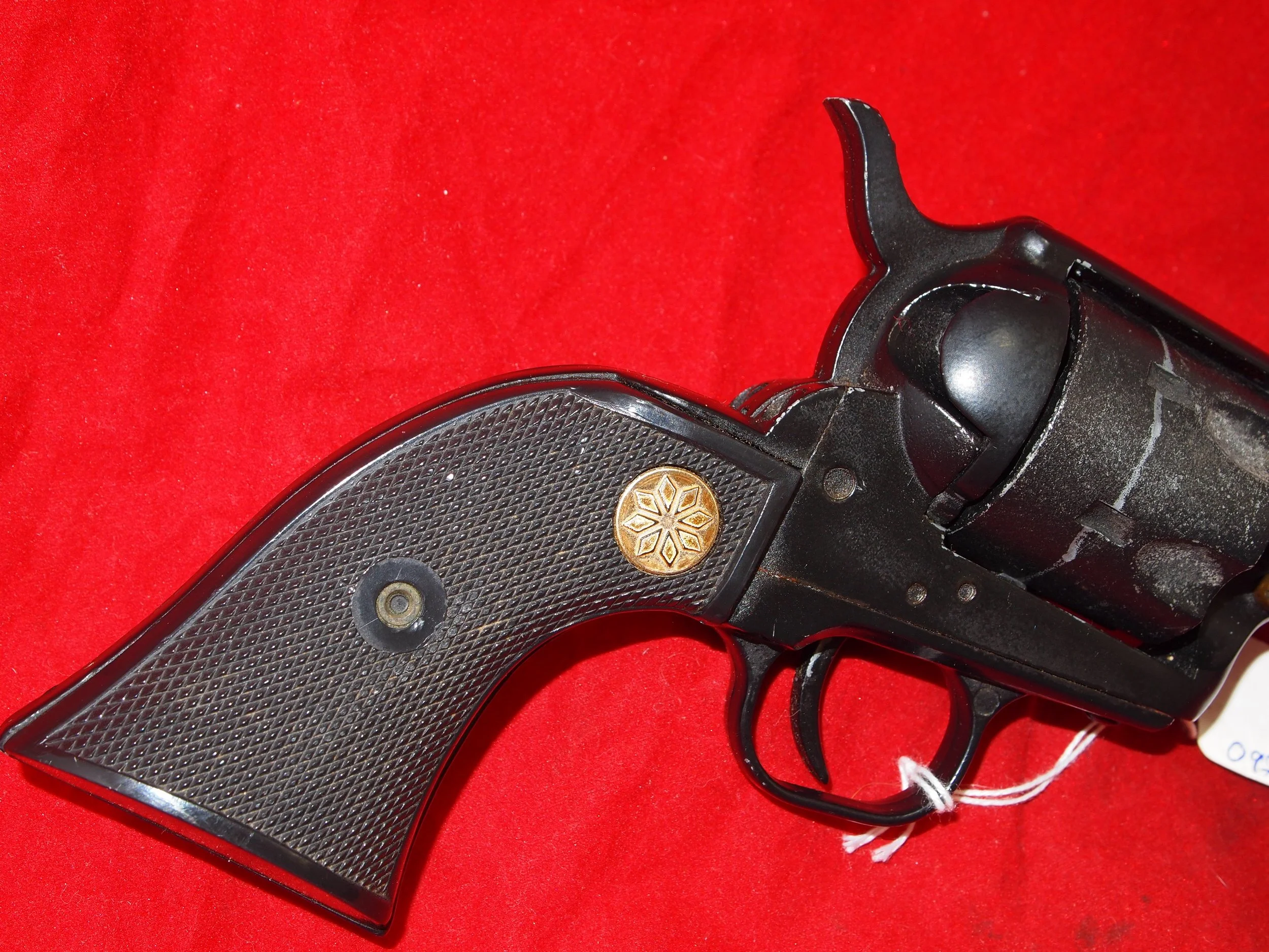 A more budget friendly Colt Peacemaker replica by Kimar (I think). An alloy made black painted replica in good working order.