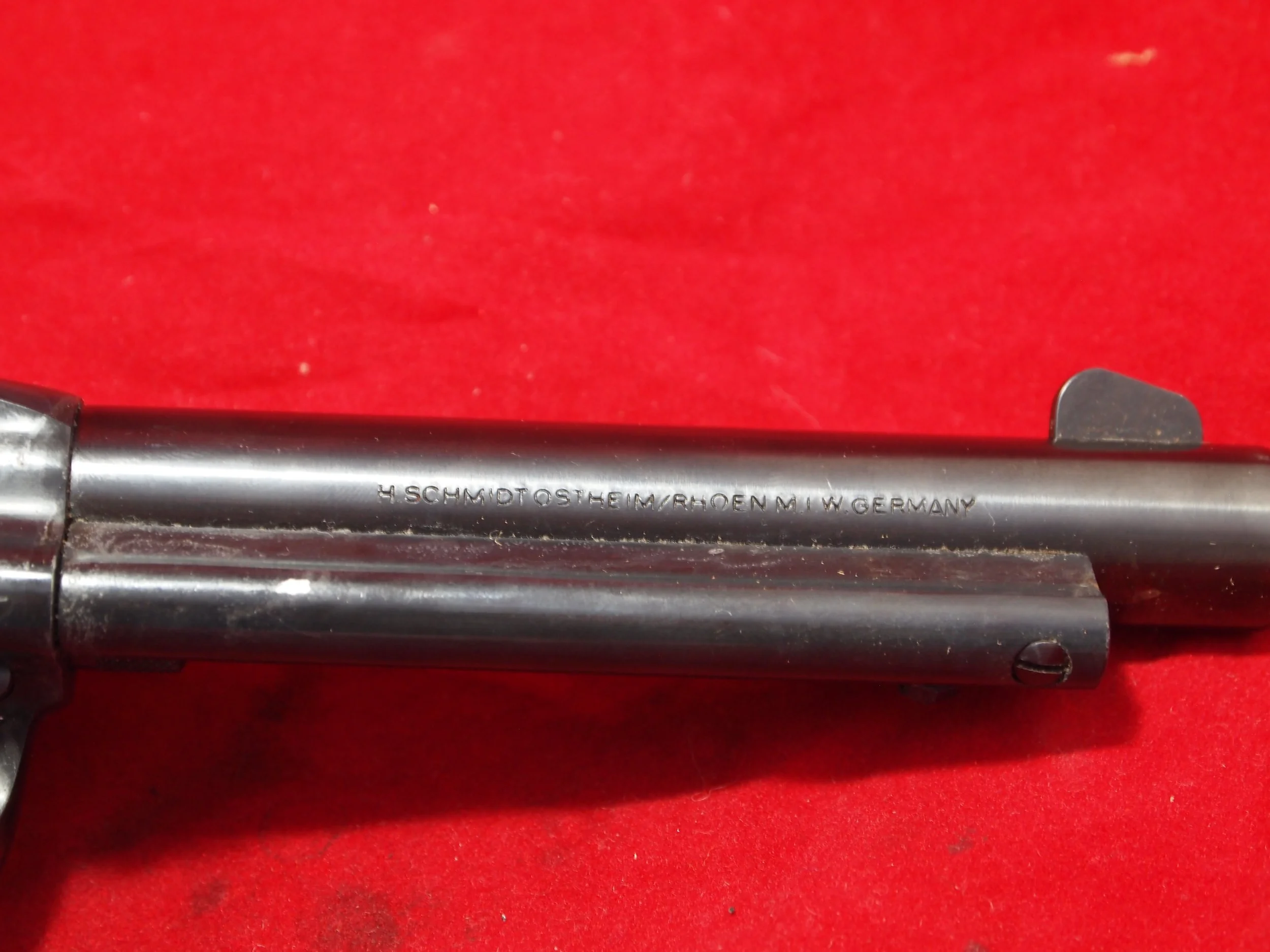 A very good condition full size Schmidt .22 (long and short) Peacemaker. This pistol has had very little use with a good trigger and action side venting.