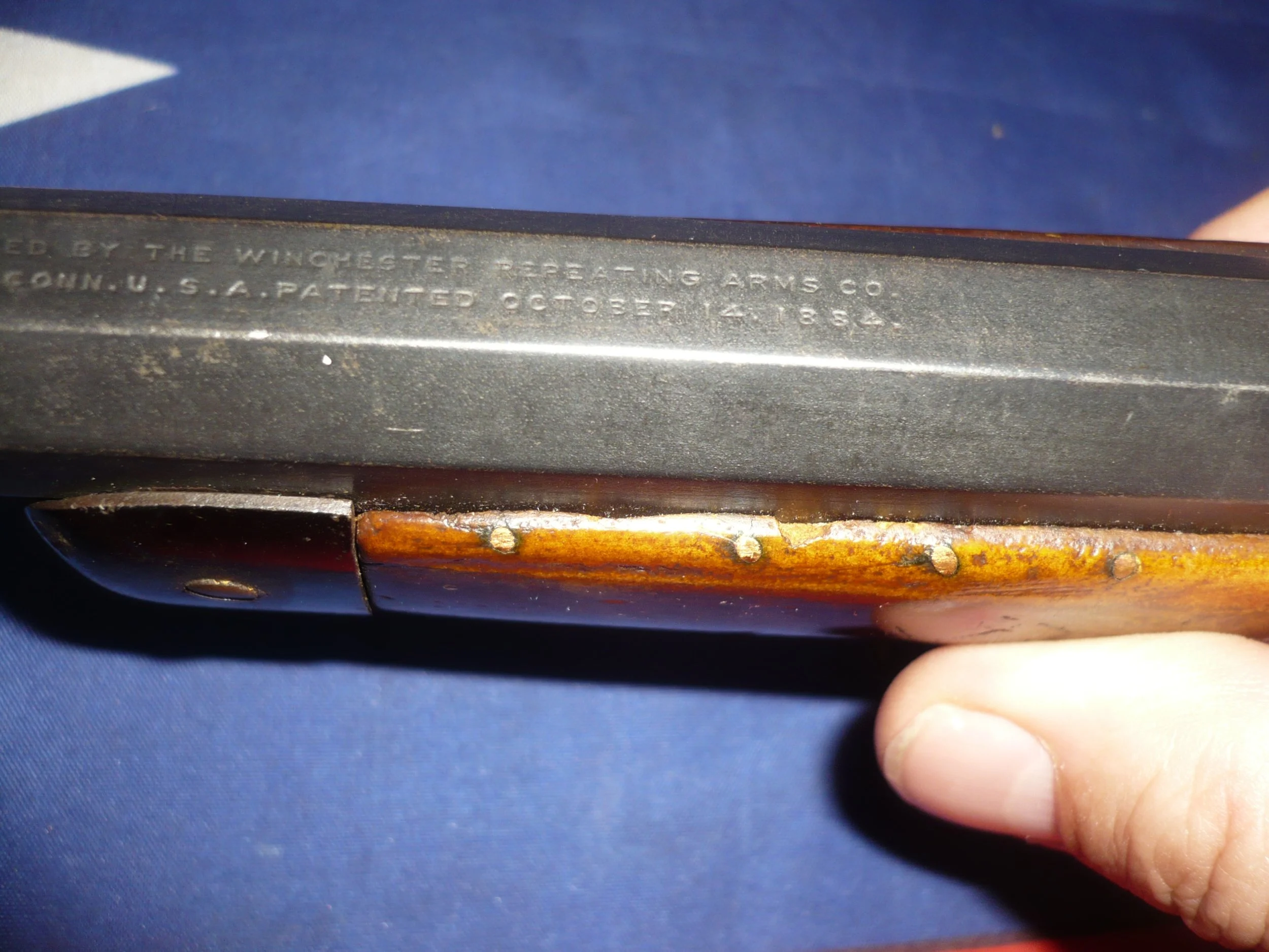 A nice genuine Winchester, not a copy. I think it is a 1892 but Model number is not clear, time and use has rubbed that bit of info away!